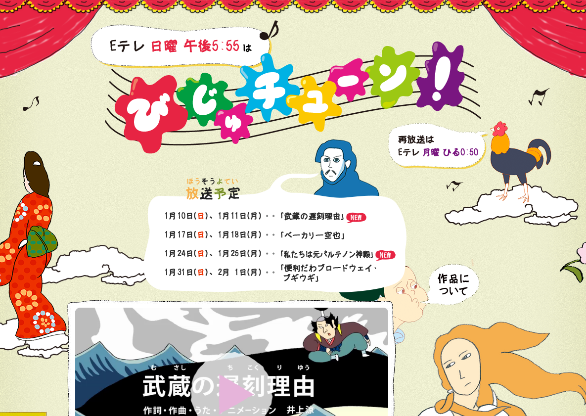 世界の「びじゅつ」をユニークな歌とアニメ(by井上涼)で表現。作品の魅力をあなたのハートに強烈インプット!