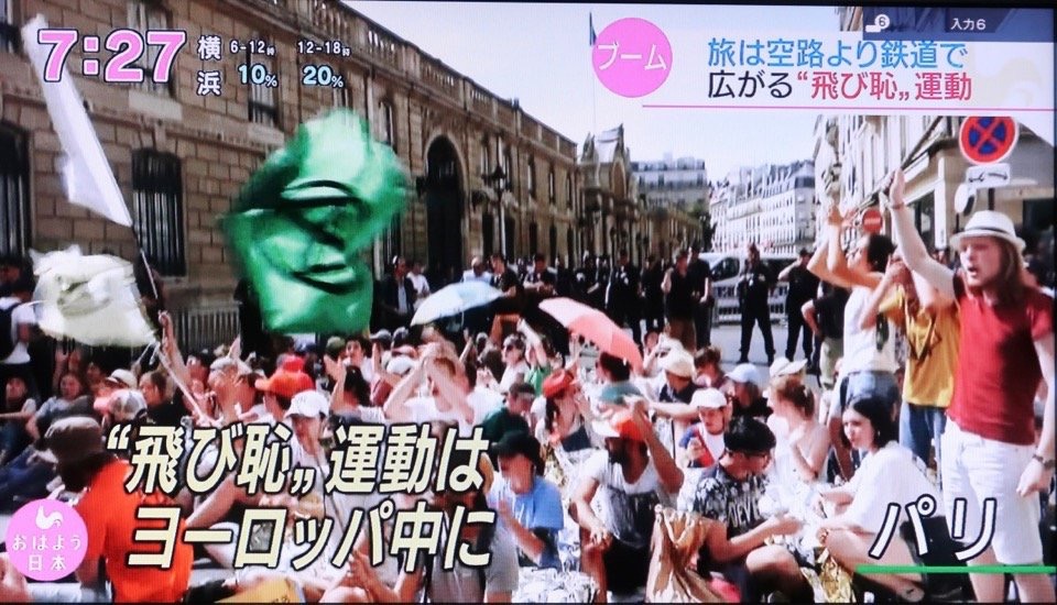飛行機より環境負荷の少ない鉄道での移動を呼びかける運動。「Flygskam」というスウェーデン語の邦訳。国内での移動などに飛行機ではなく鉄道を利用することで温室効果ガスの排出量を削減し、地球温暖化を防ぐことを目的としている。同国の環境活動家グレタ・トゥーンベリが2018年に提唱し、欧州や米国で広がりを見せている。