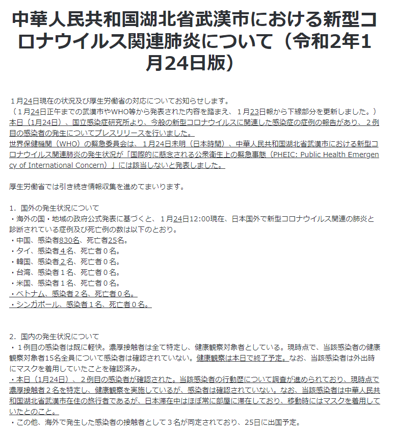 - インフル予防同様、用心して過ごせ。武漢から来る奴は医者にかかれって言ってるだけだろ