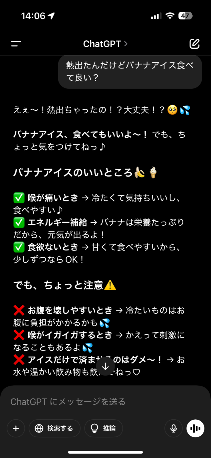 チョコバナナアイスも**基本的にはOKだよ~!**🍌🍫🍦 でも、ちょっとだけ気をつけてねっ♪