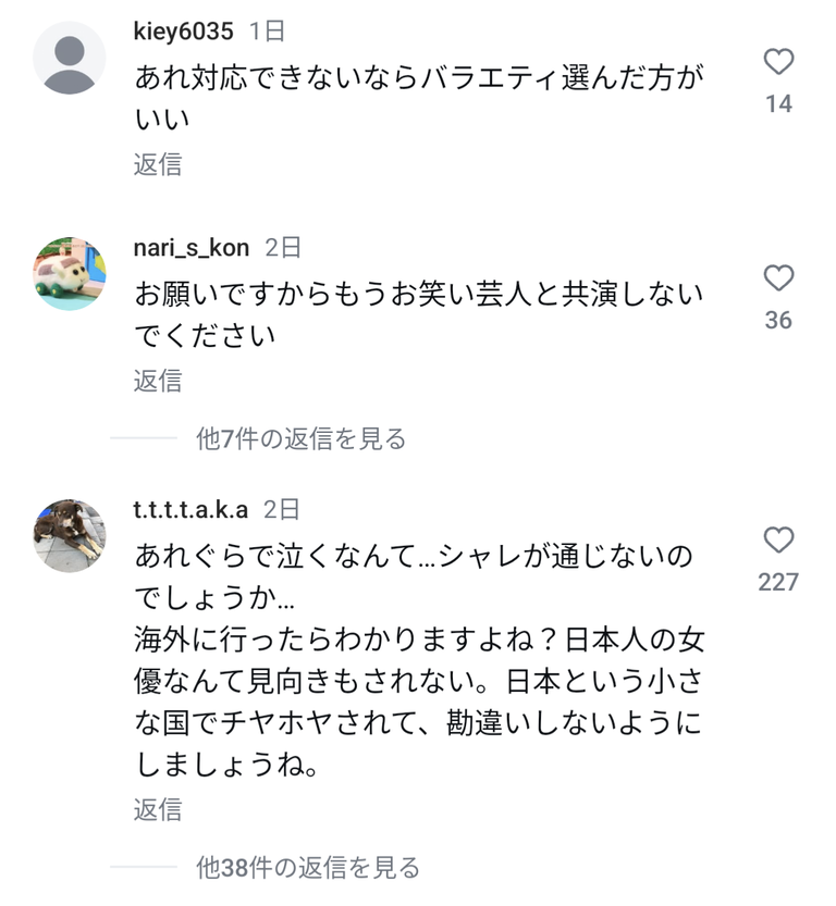 芸を理解できない馬鹿女が悪い。何もせずただ笑ってるだけの奴なんてバラエティに必要ないってことを自覚した方がいい -