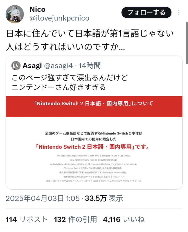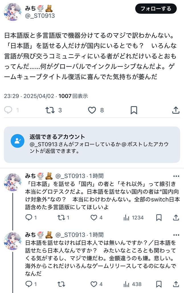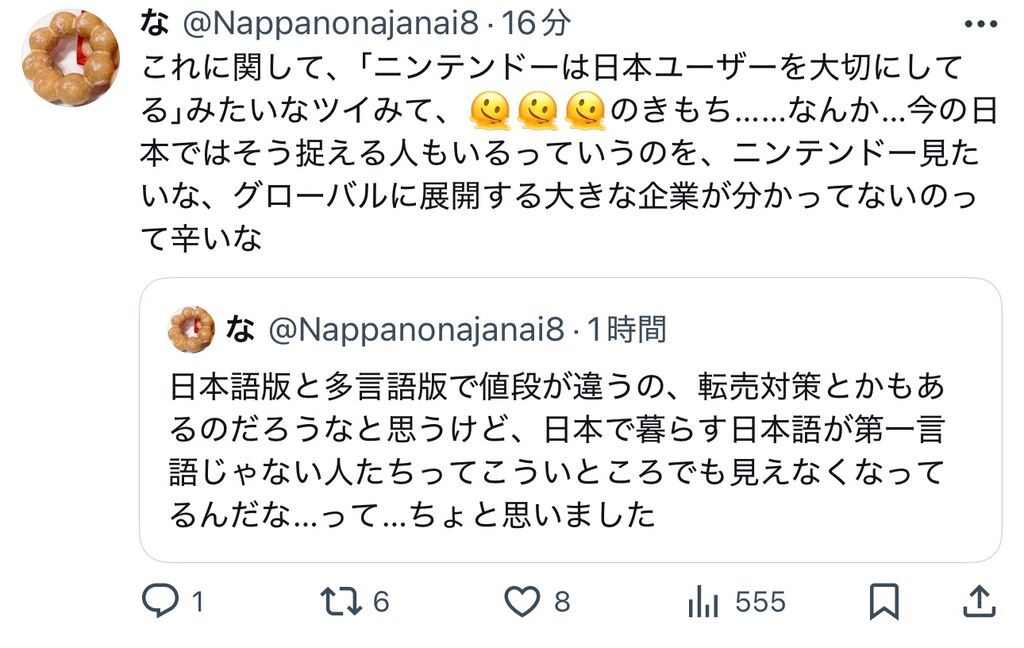 - 任天堂「多様性に配慮して日本語判らないお客様向けのグローバル版も用意してますが?」