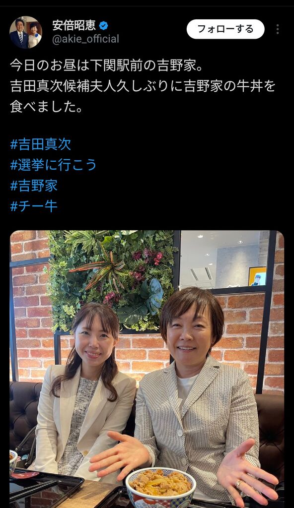 吉田夫人が久しぶりにチーズ牛丼食べたことの報告ありがたい