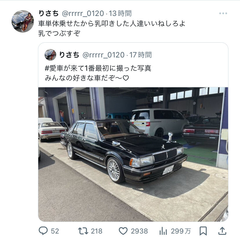 そりゃこのツイートで伝えたいことは納車何年とかじゃなくて私のエロい身体見て見てだから