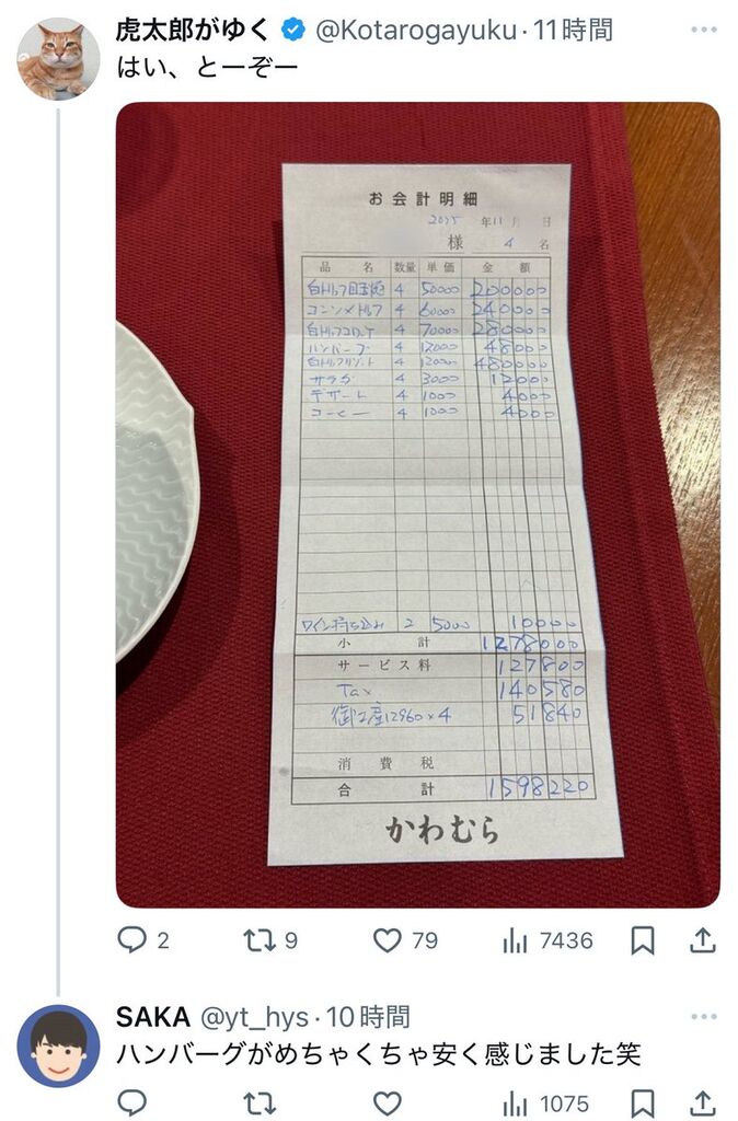 富豪なら値段を聞いたり、請求書をさらすよーなことはしない -