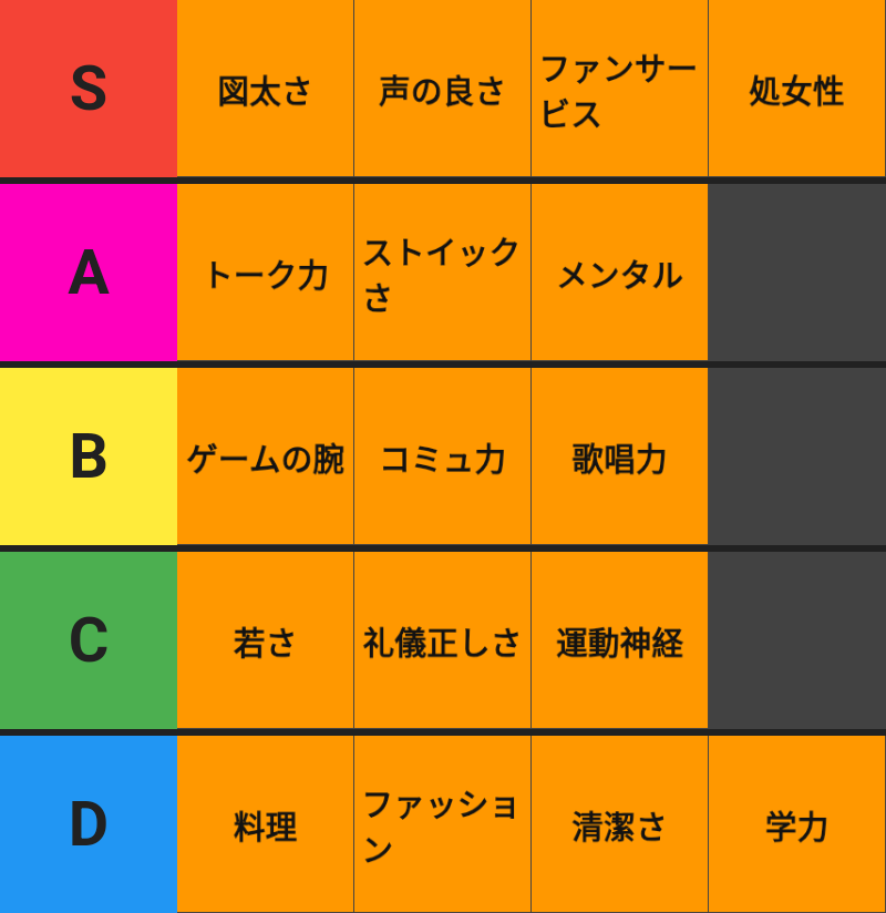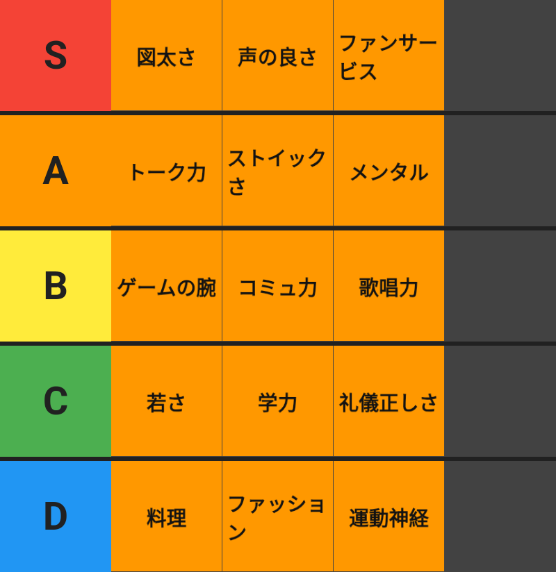 メンタルと図太さ同じだから片方でいいし、右端の列全部いらないな -