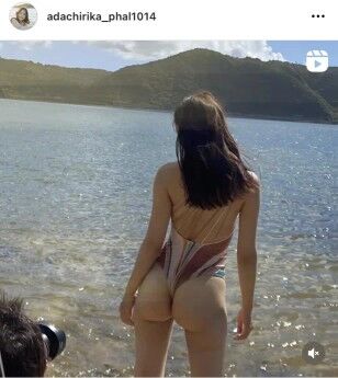 水着姿のオフショットが公開され、あらわになった足立の魅力的なヒップが反響を呼んでいる。